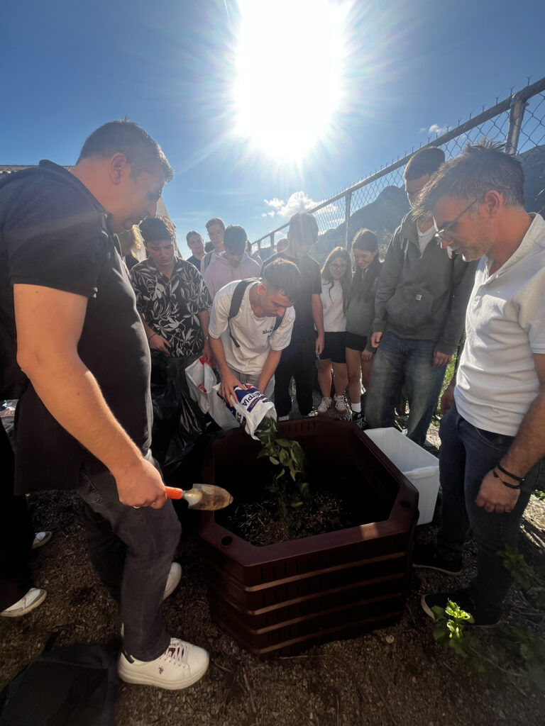 Der Dienstag begann mit einer gemeinsamen Englischstunde an der Schule, in der wir über Strategien zur Vermeidung von Lebensmittelverschwendung sprachen. Danach bereiteten wir den schuleigenen Kompost vor: Wir sammelten Gräser, Äste und Essensreste, die später verarbeitet wurden. Zwei Agronomen der Berufsbildenden Schule Korfuerklärten uns die Funktionsweise und Vorteile der Kompostierung und begleiteten uns beim Aufbau. Am Nachmittag besuchten wir die Olivenfarm „The Governor“, wo wir mehr über traditionelle und moderne Verfahren der Olivenölproduktion erfuhren und an einer Verkostung teilnahmen – ein wichtiger Beitrag zu unserem Projekt „Think Before You Throw – Rethink, Reduce, Respect“. Der Tag endete mit einem feierlichen Abschiedsdinner in geselliger Atmosphäre.